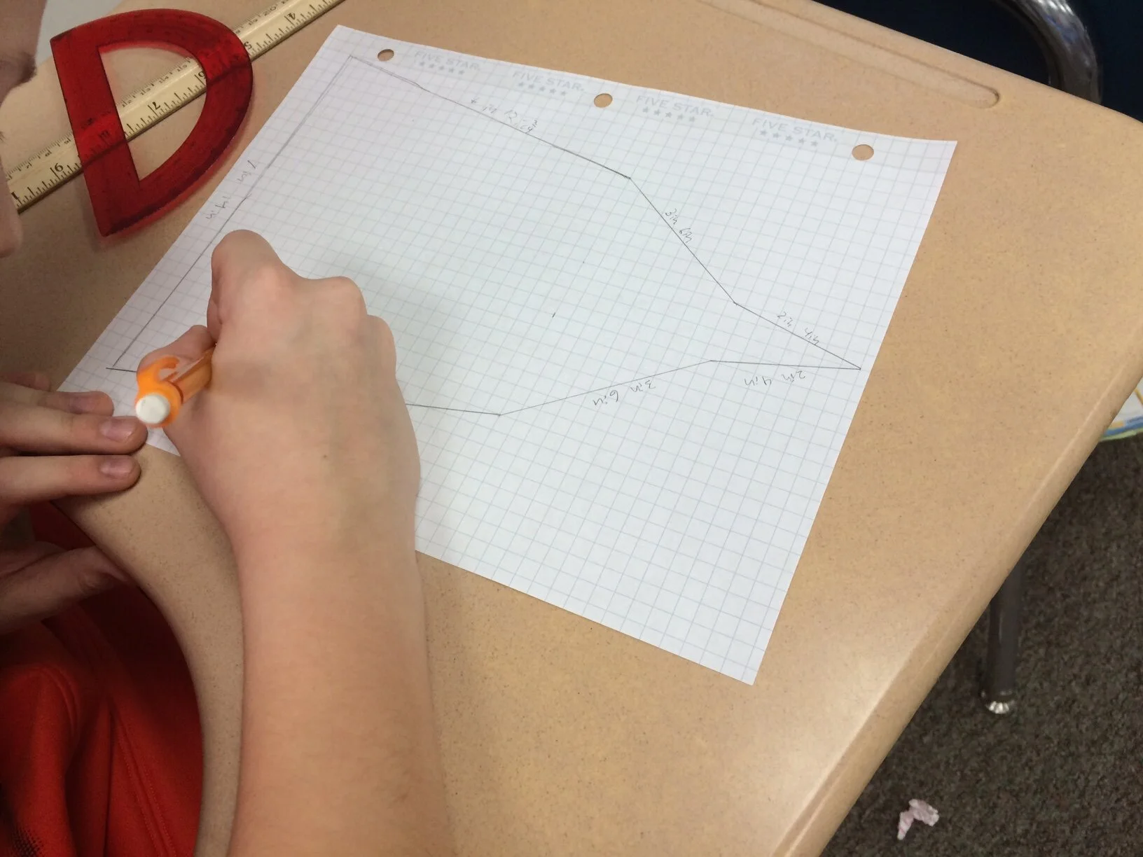 The first step of the Blueprint Project is for students to create a building of their choice on a piece of graphs paper. Often times, this is their favorite part! They love the open-ended nature of being able to design any type of building, with anything in it. Lots of students design dream houses, but I always look forward to seeing the creativity of the students when picking the type of building. I have seen everything from animal rescue centers to aquariums! On their graph paper blueprints, they must have all angles/wall lengths measured and labeled. In addition, I require the students to double each of their lengths and write this in parenthesis. This is very helpful later on when they are enlarging their blueprints! Here is a picture of one of my students designing their blueprint.